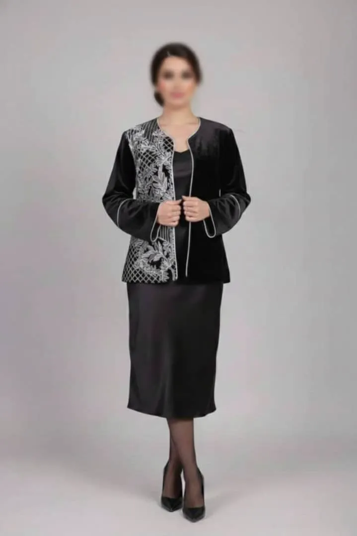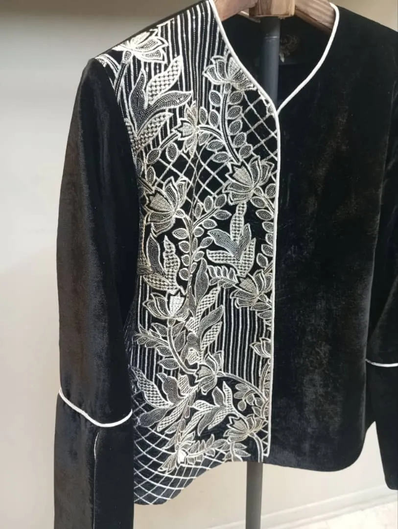 کت مخمل مشکی سوزن دوزی با طرح گل و پرنده