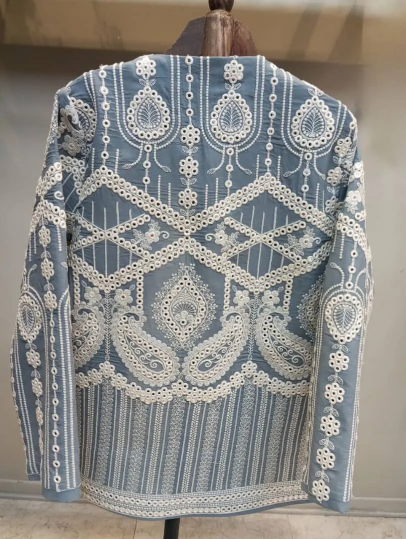 کت سوزن دوزی آبی مجلسی کد 087