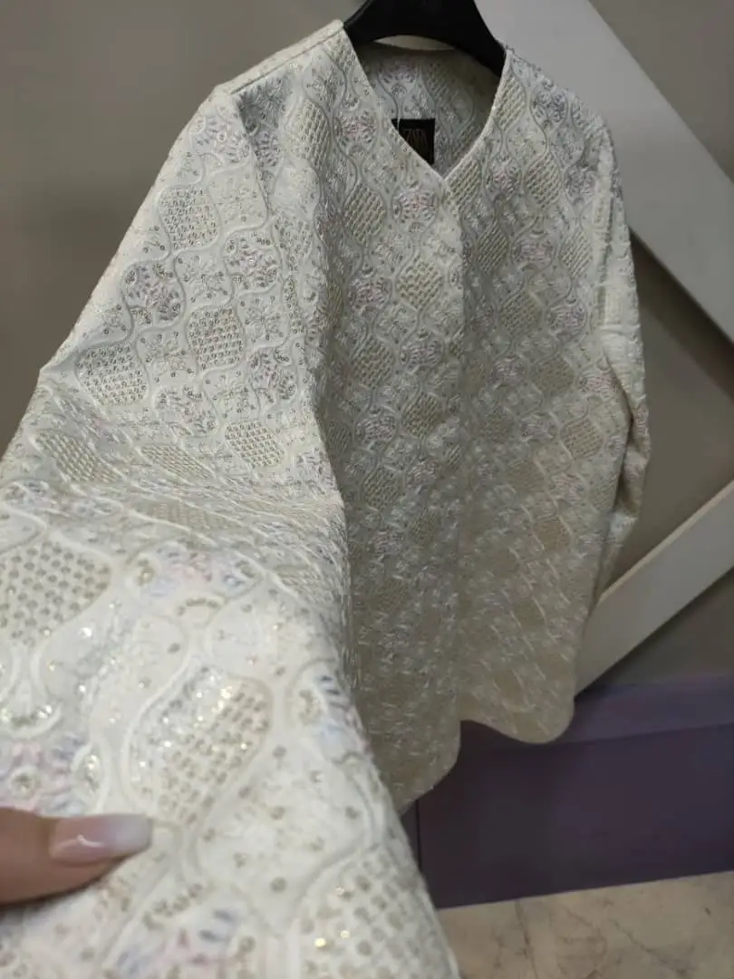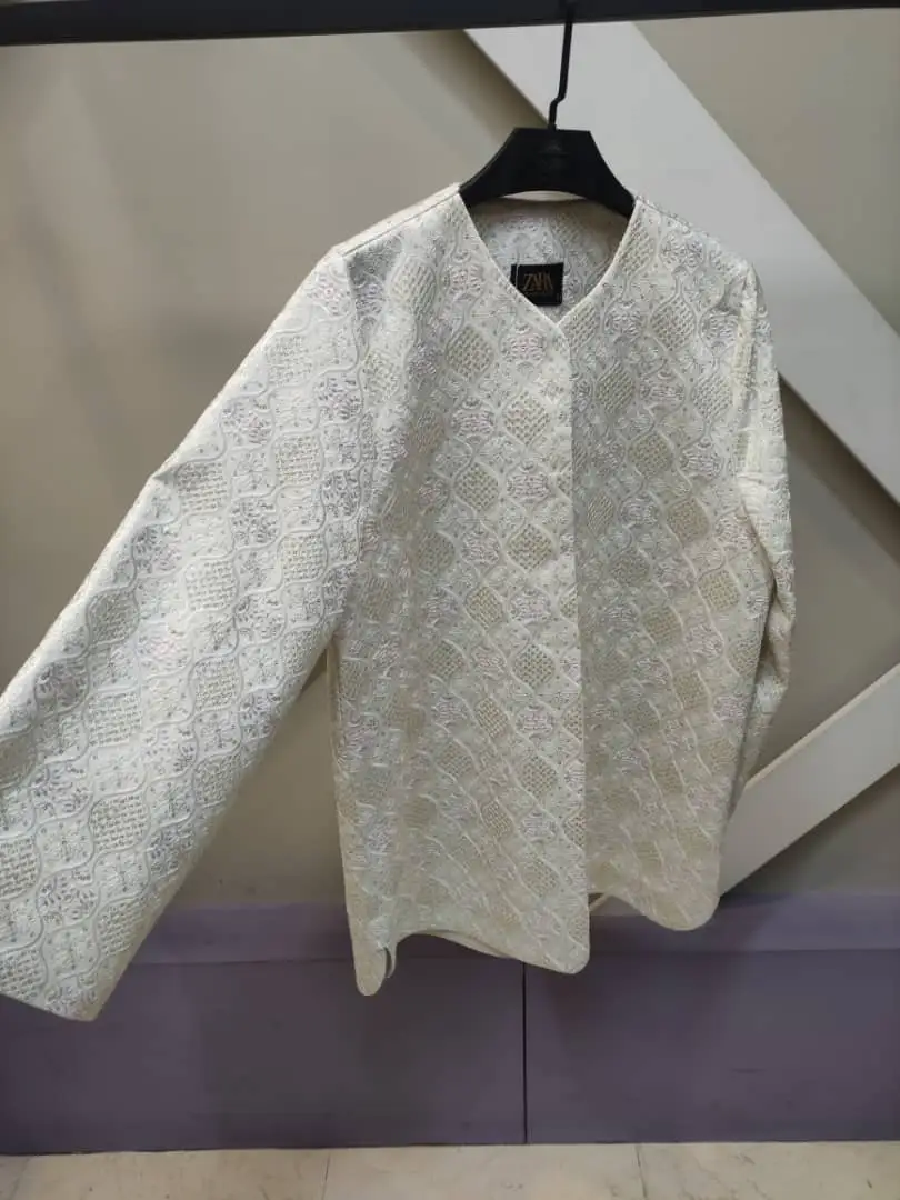 ✨ کت سوزن‌ دوزی مجلسی کرم زنانه، تلفیقی از ظرافت و شکوه