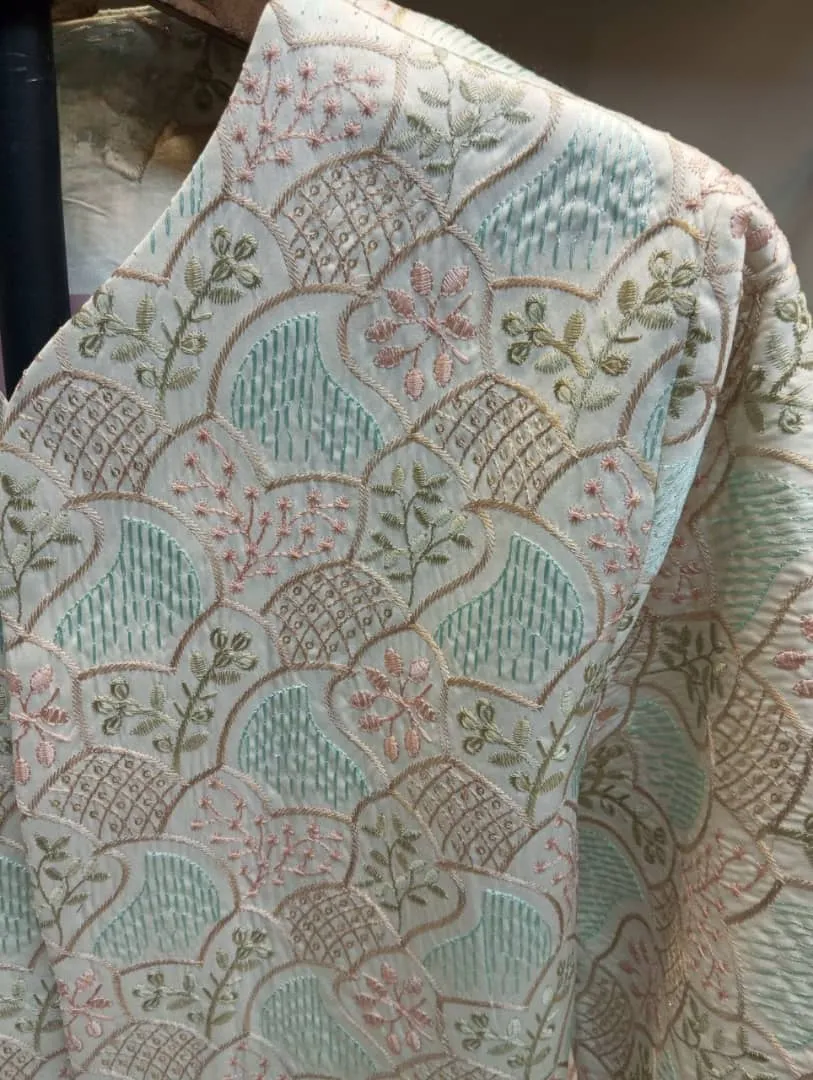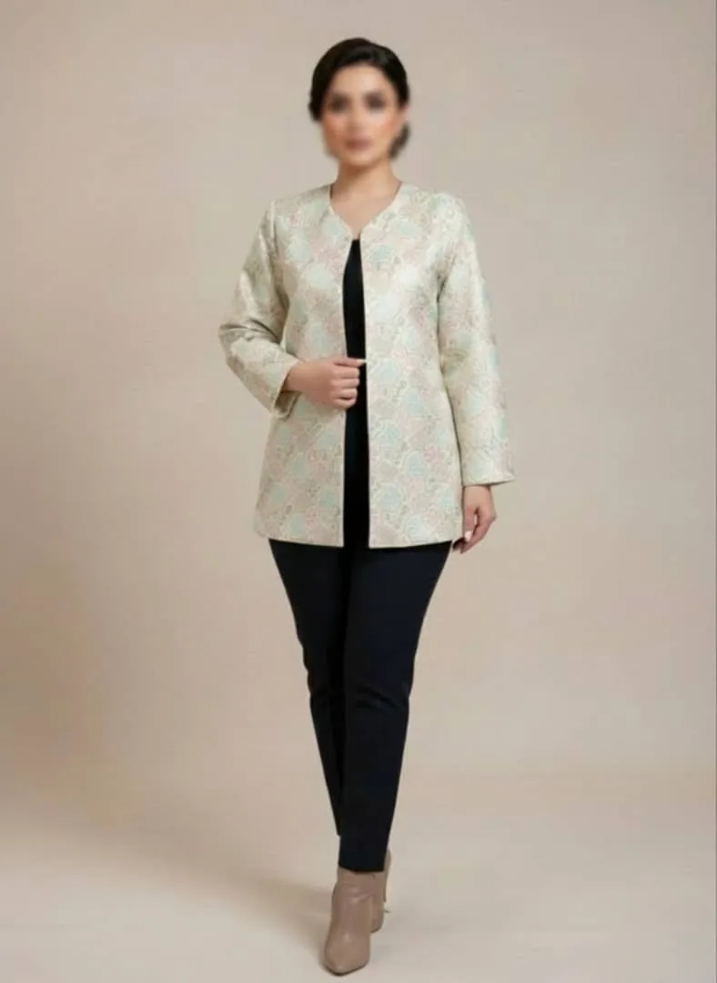 ✨ کت مجلسی زنانه با سوزن دوزی کرم آبی