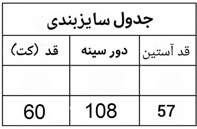 این کت با برش آزاد و طراحی فری سایز، برای بانوانی با دور سینه تا حدود ۱۰۸ سانتیمتر مناسب است.