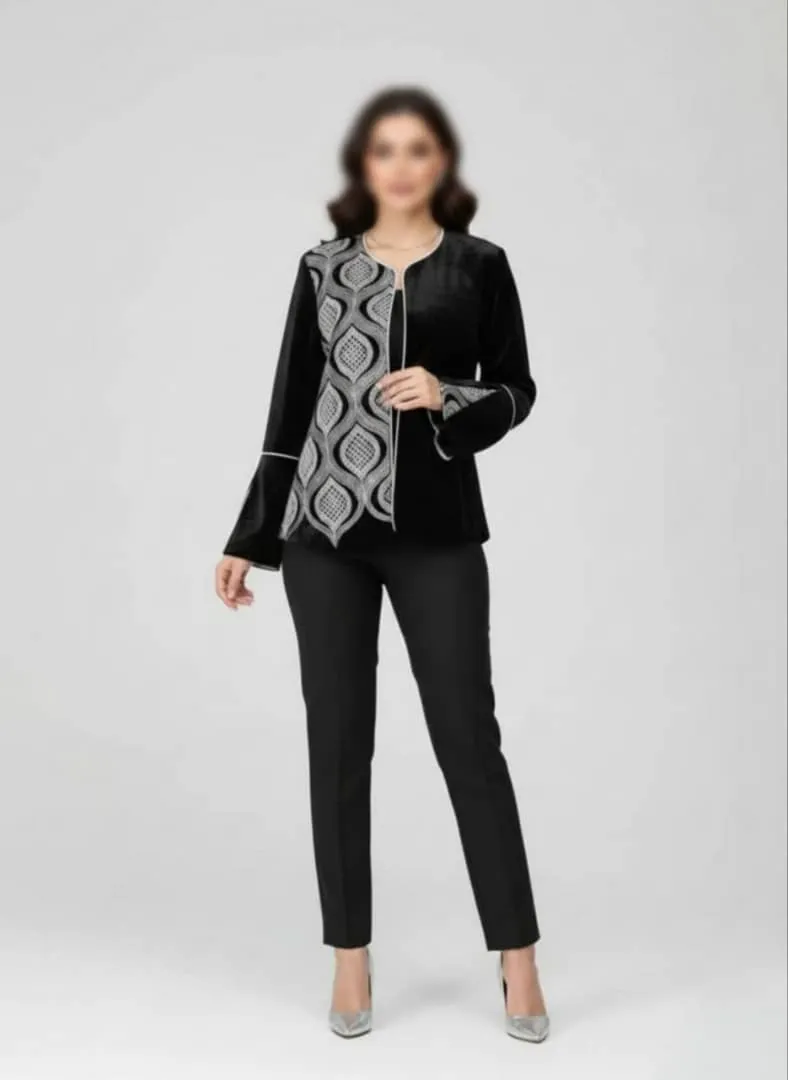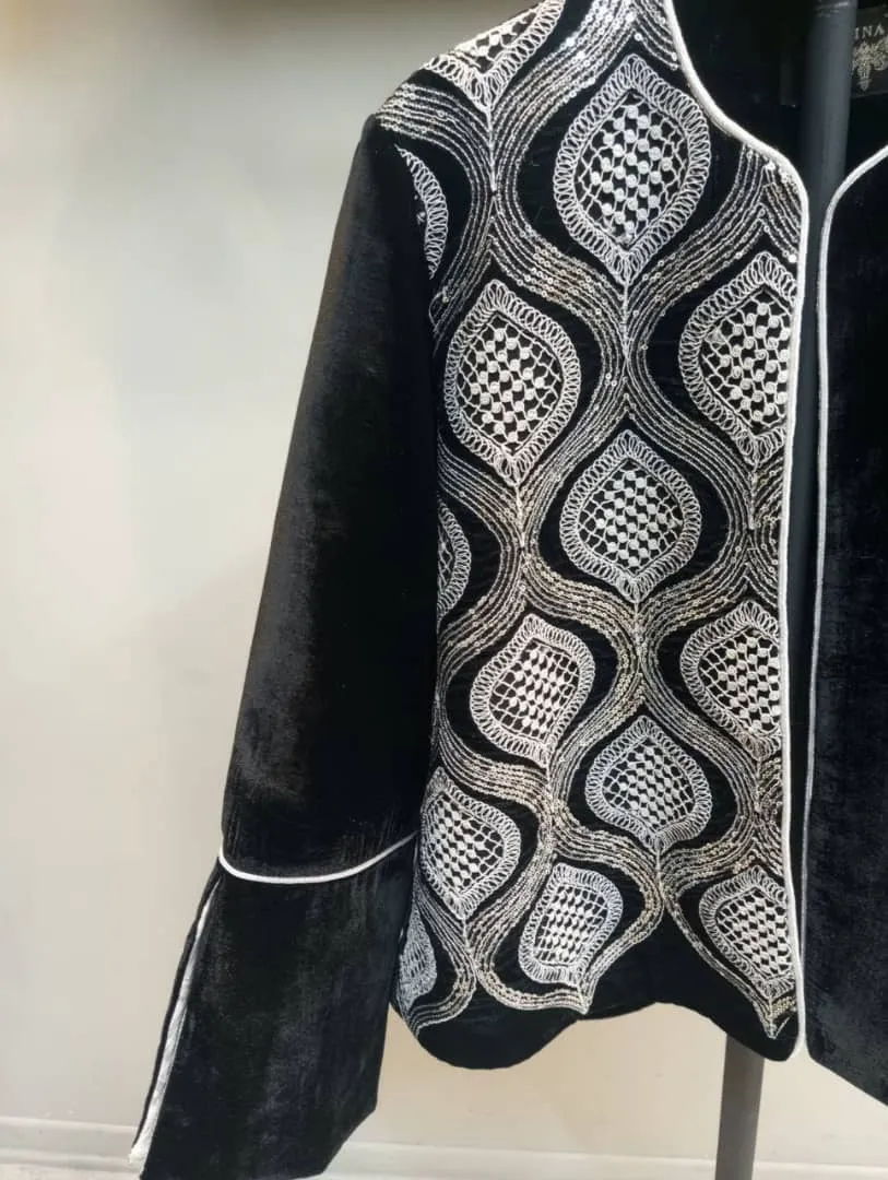 اگر به دنبال لباسی خاص، سبک و در عین حال پرجزئیات هستید، کراپ کت مخمل مشکی گلدار انتخابی بینظیر برای شماست. این کت با ترکیب رنگهای مشکی و سوزن دوزی سفید، حس اصالت و انرژی را همزمان در استایل شما ایجاد میکند.