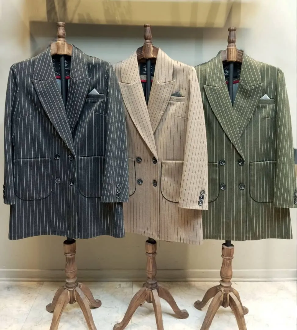✨ کت اداری زنانه طرح دیپلمات راه راه، استایل رسمی و شیک برای محیط کار ✨