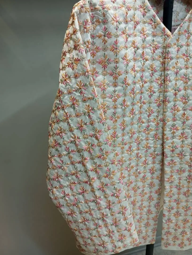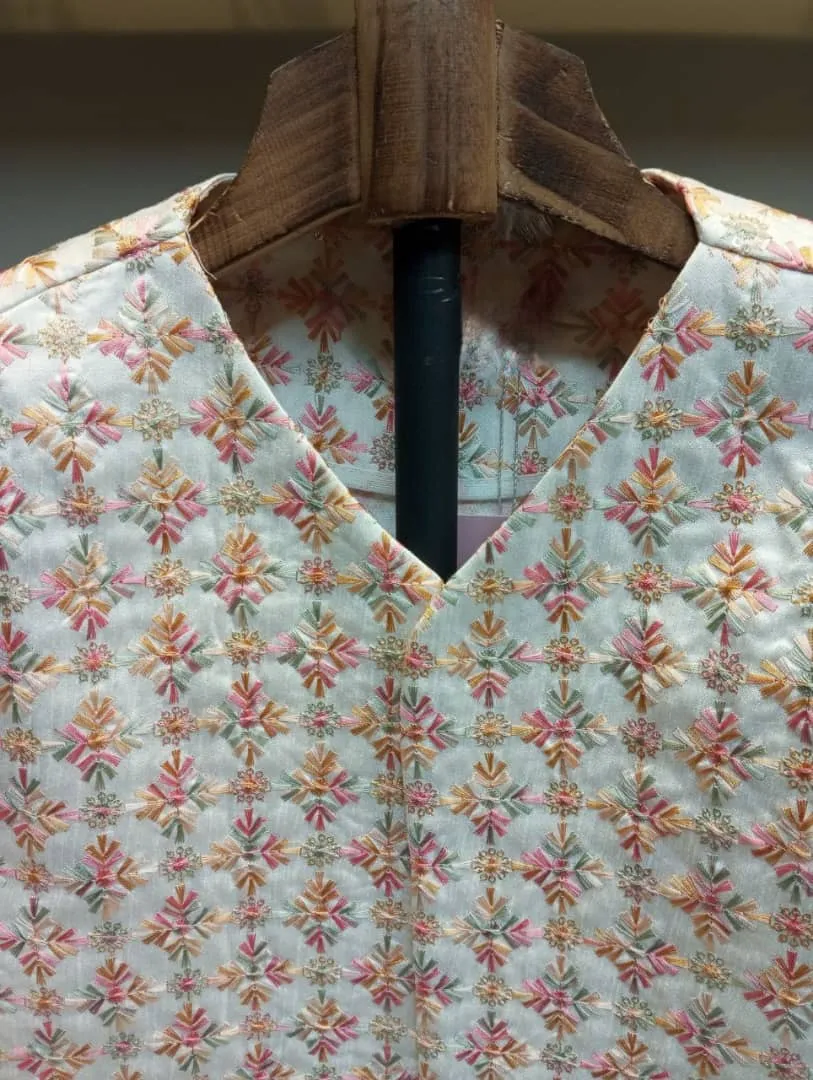 ● طرح: شیک کرم رنگ با سوزن دوزی طرح گل صوزتی