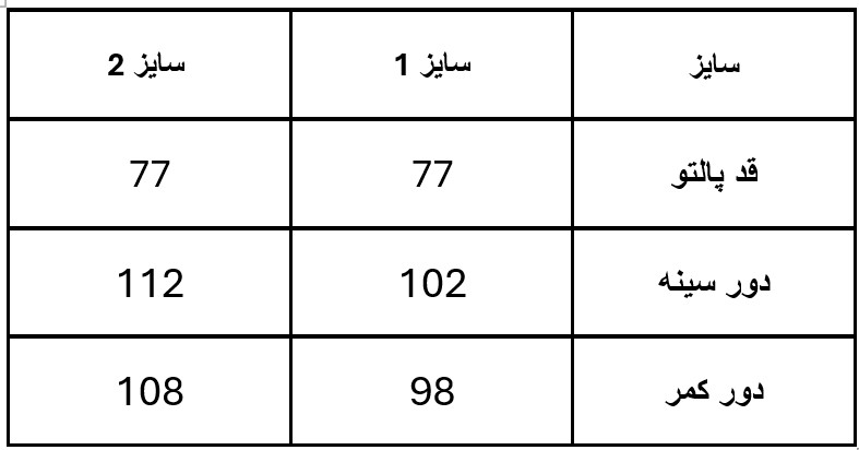 • قد پالتو: 77 سانتی‌متر