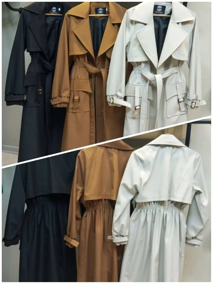 بارانی بلند کمر کش در 3 رنگ جذاب کد 093