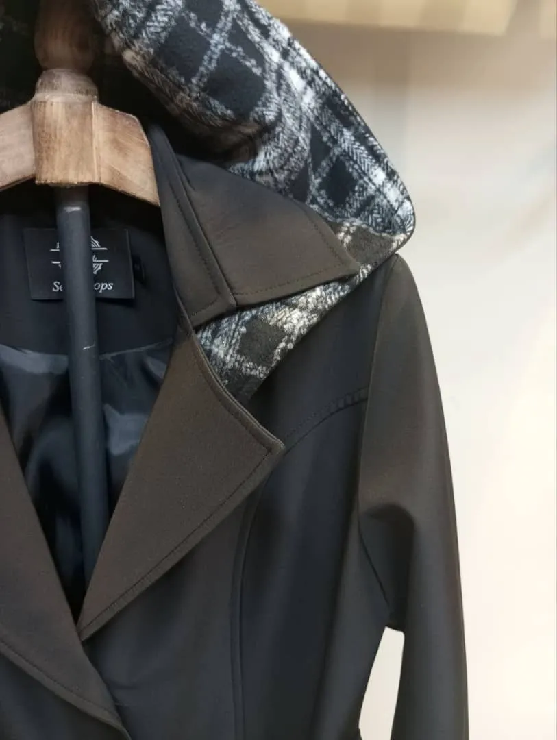 ☔ بارانی آستردار سانتانا با کلاه چهارخانه پشمی