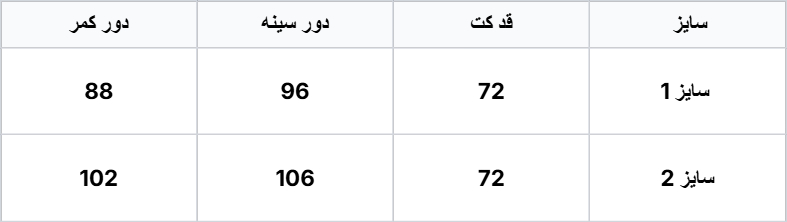 | سایز | دور سینه (cm) | دور کمر (cm) | قد کت (cm) |