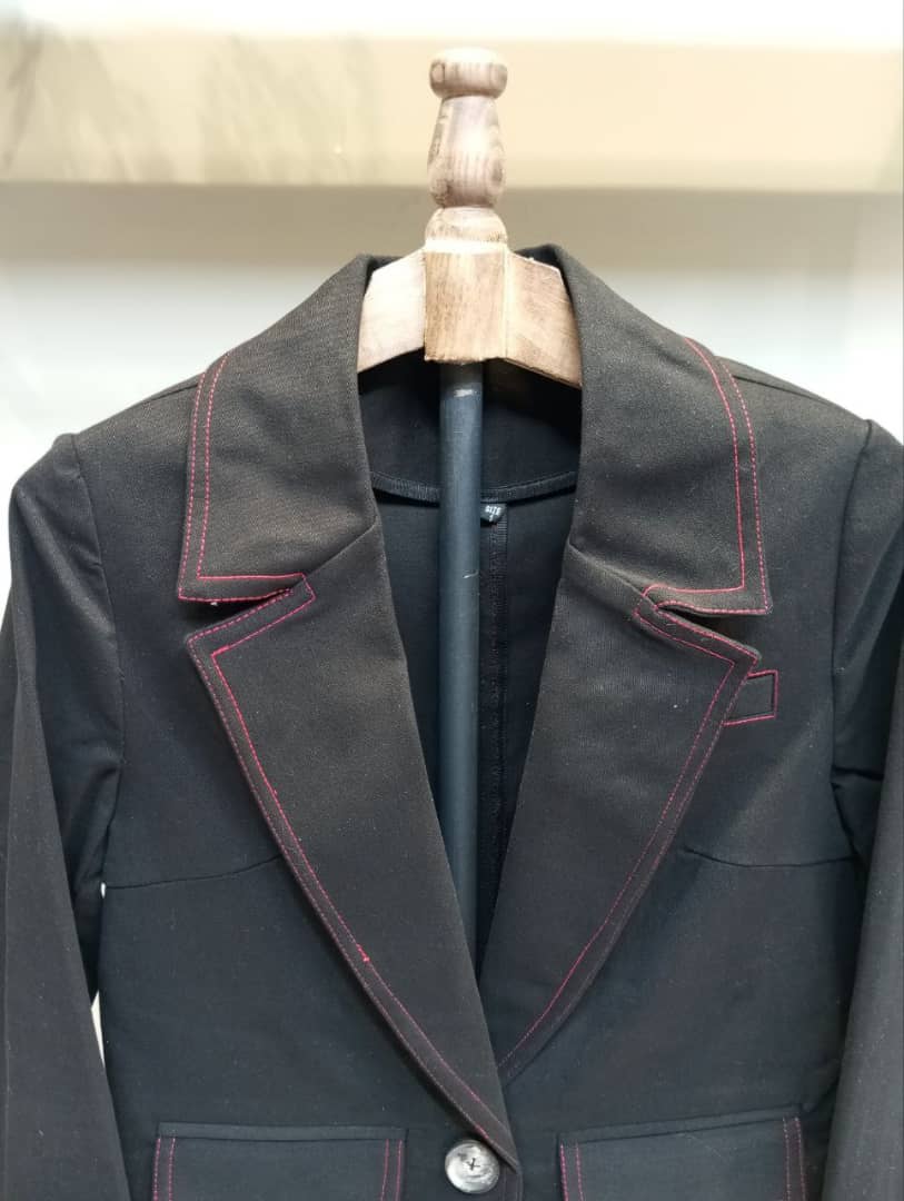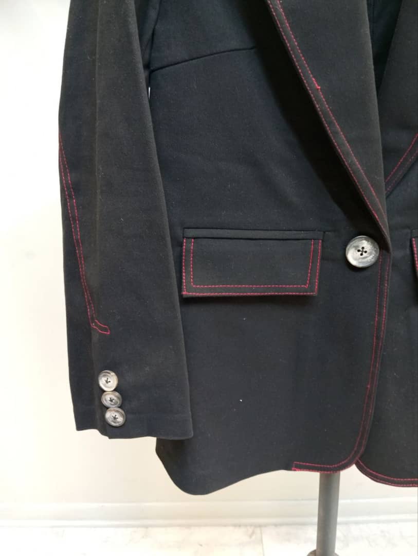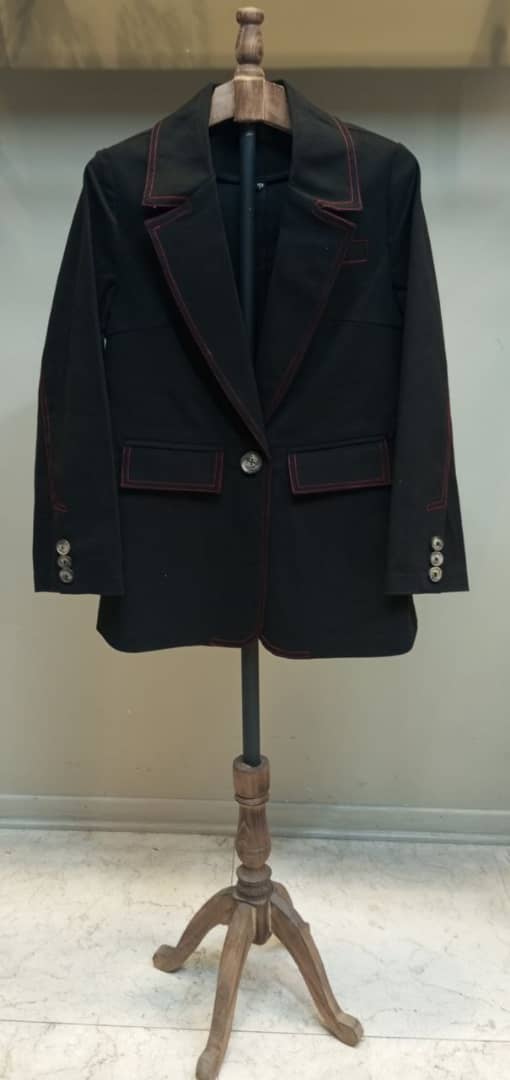 کت کتان زنانه مشکی تکدکمه با دوخت قرمز | سبک، شیک و چهار فصل